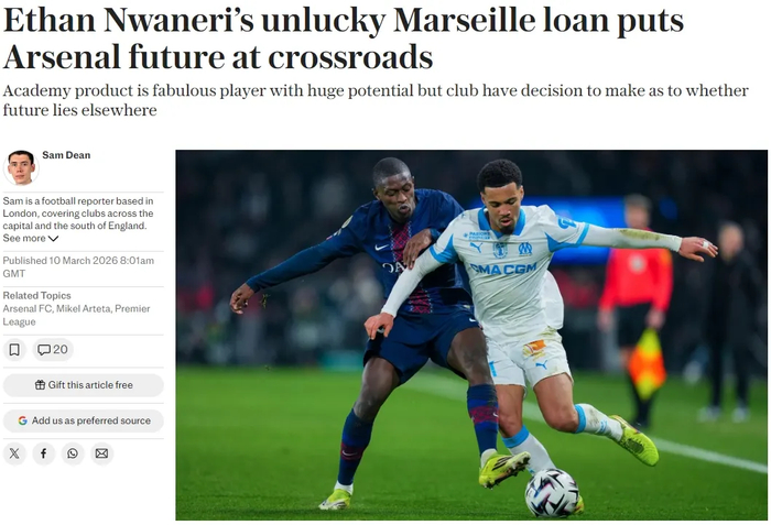 电讯报记者SD发文谈到了恩瓦内里的租借和未来问题。