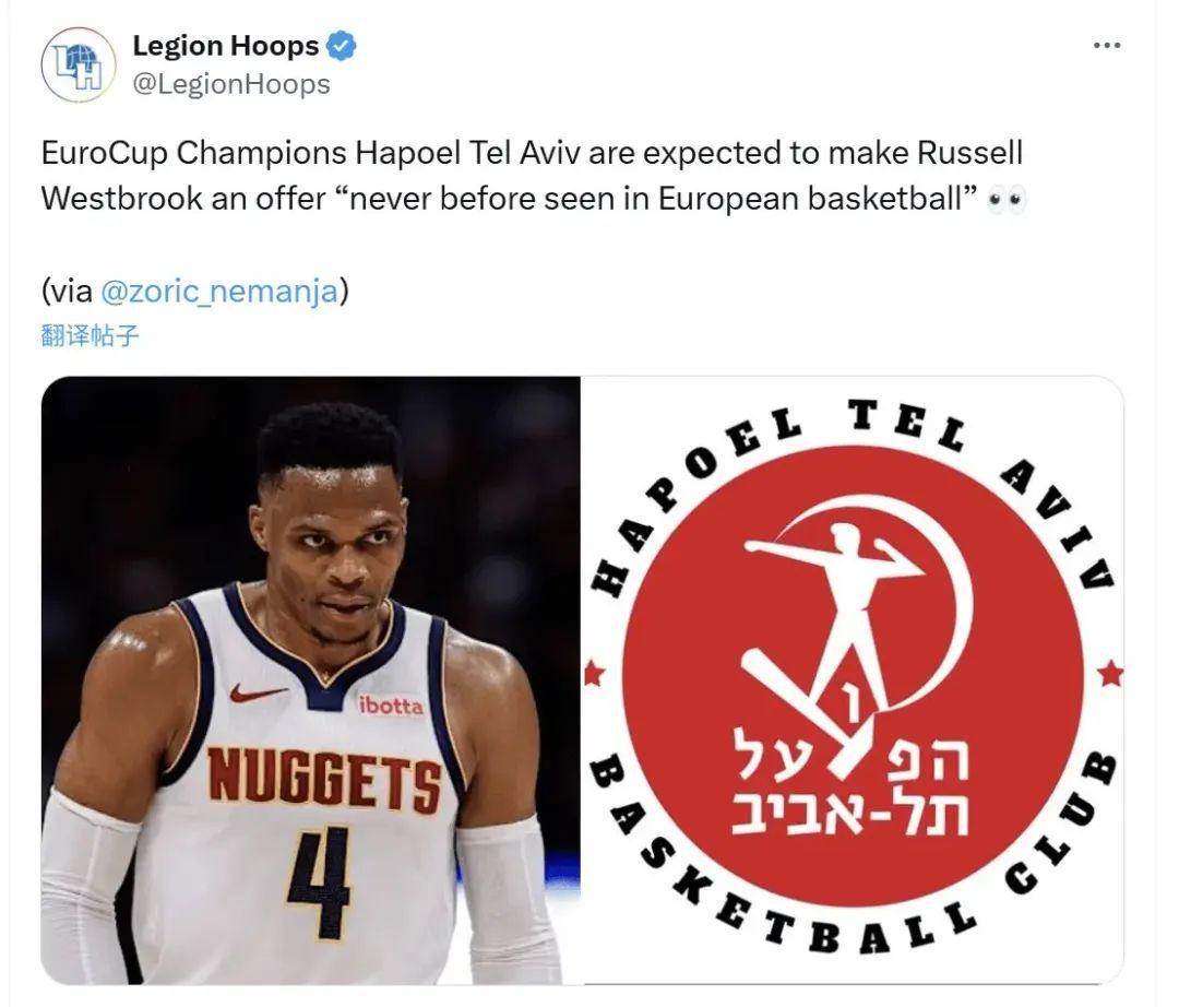 或许会有老哥说威少想离开NBA了,因为此前有报道欧洲杯冠军以色列特拉维夫哈普尔俱乐部准备以天价合同拿下他,其就经不住诱惑打算开启海外联赛之旅。